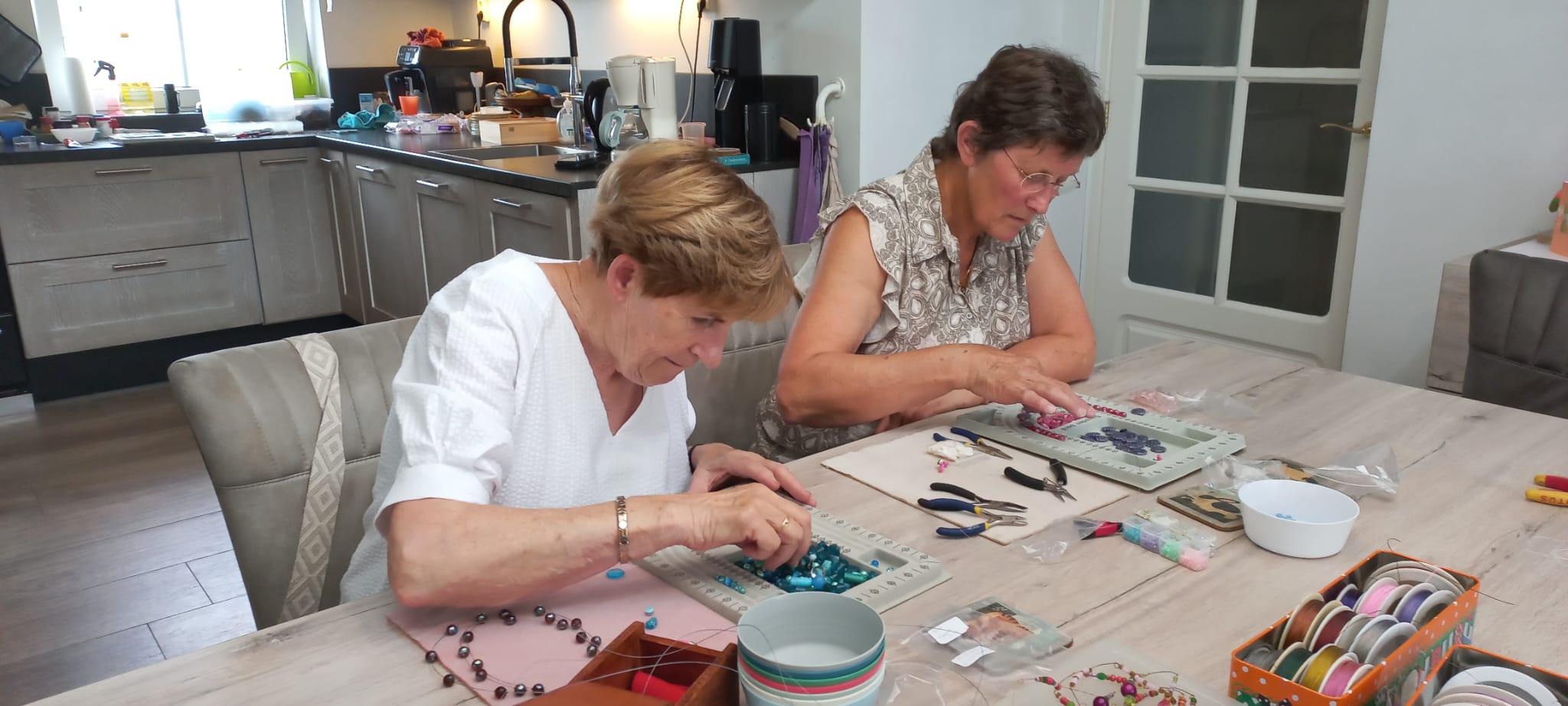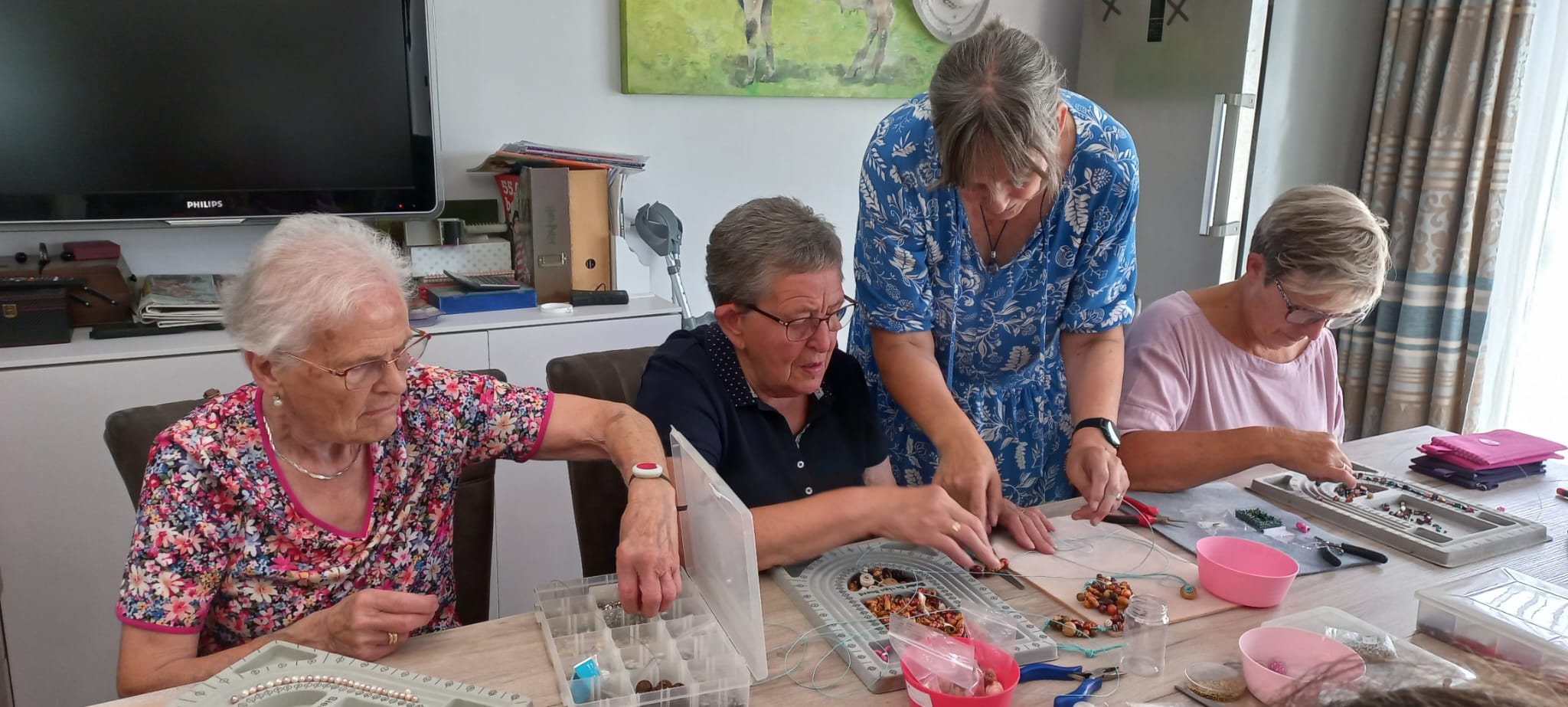 En dat lukte ,er werden allerlei sieraden gemaakt , heel verschillend en allemaal mooi en iedereen was tevreden met het resultaat.